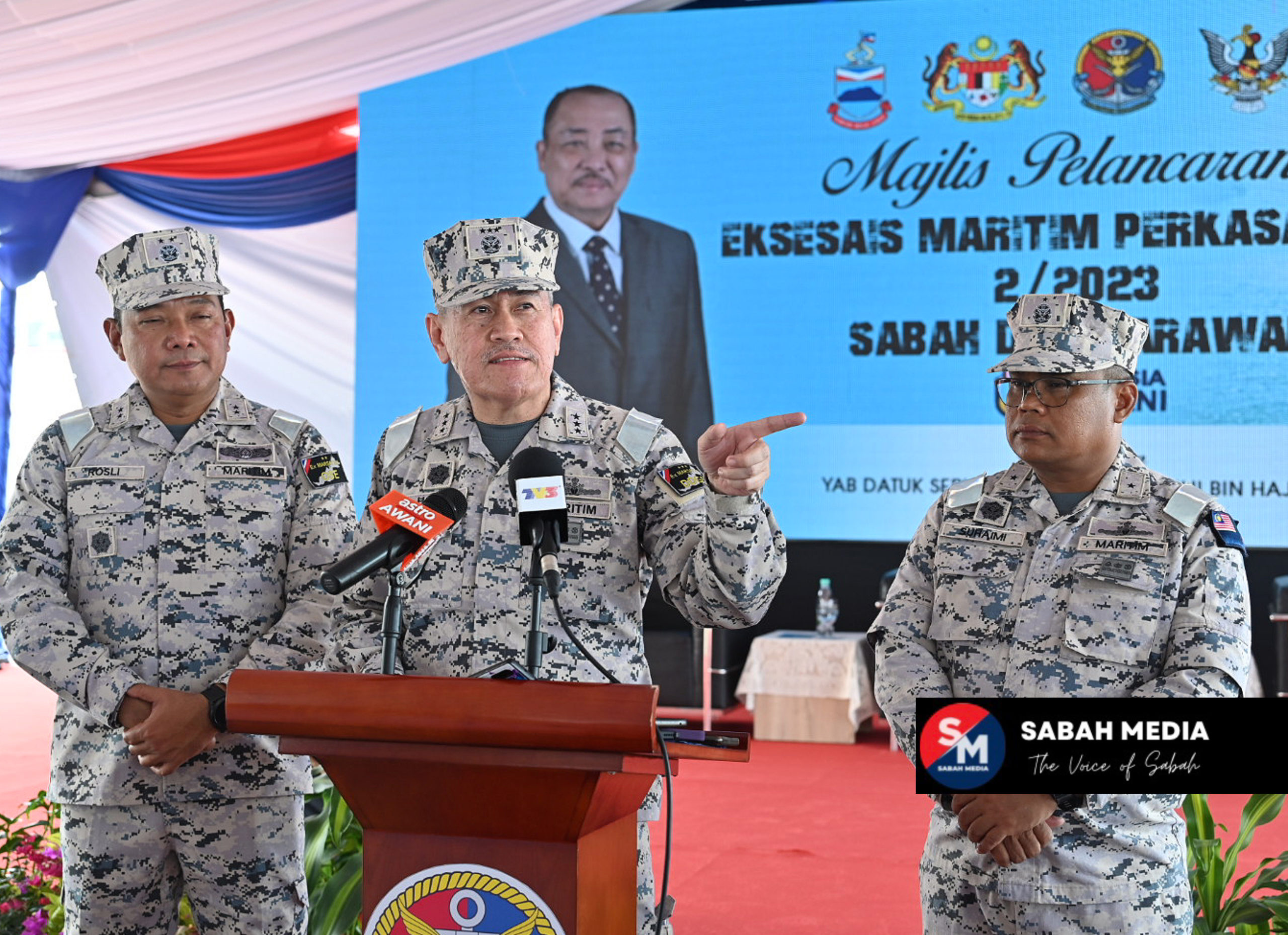 Hamid bersama Pengarah Bahagian Keselamatan dan Pengawasan Maritim Malaysia, Laksamana Muda Maritim Datuk Mohd Rosli Abdullah dan Pengarah Maritim Negeri Sabah, Laksamana Muda Maritim Datuk Che Engku Suhaimi Che Engku Daik turut menyertai eksesais tersebut.