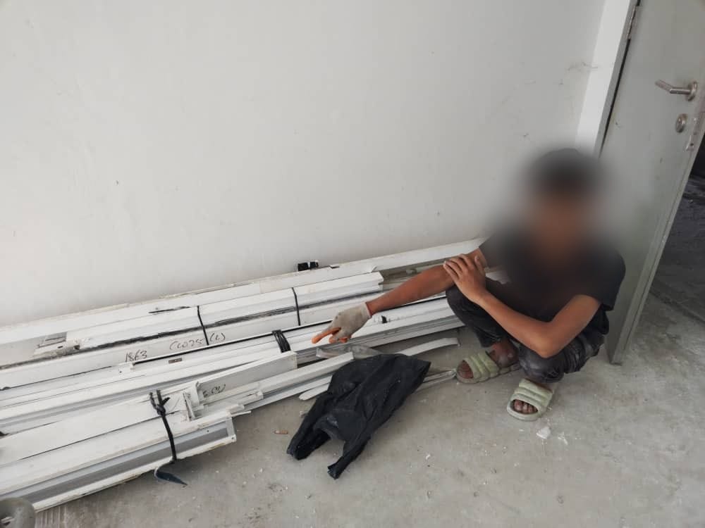 Antara suspek yang ditahan semasa sedang mencuri besi di lokasi tersebut. – Foto ihsan IPD Kota Kinabalu.