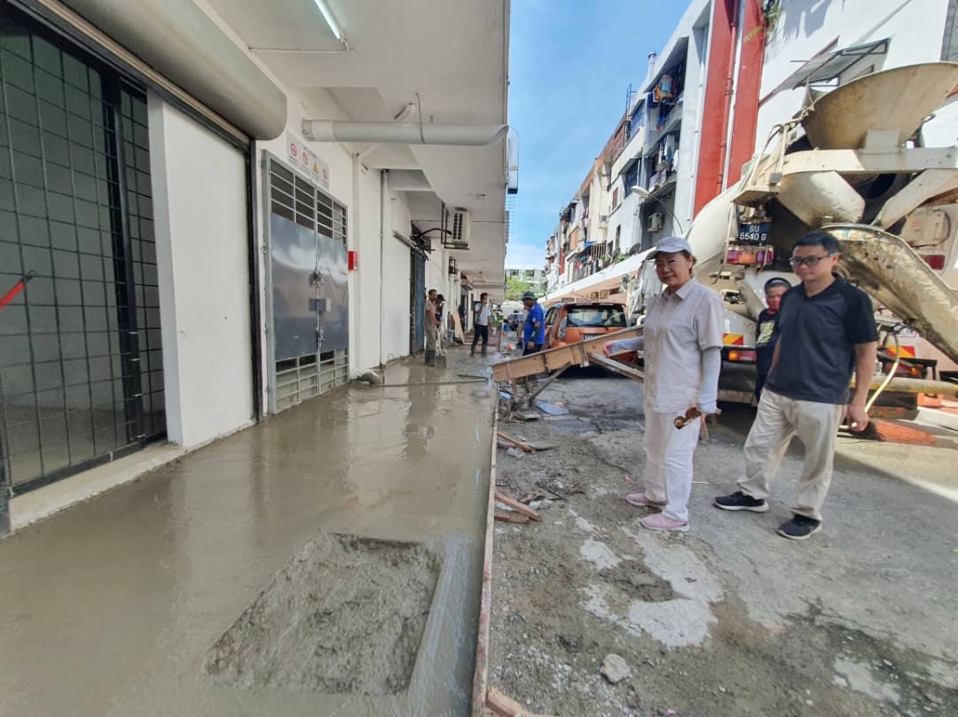 Menurut Christina, kerja-kerja pembaikan turapan jalan belakang di Sinsuran telah siap 80 peratus, sementara menunggu sentuhan akhir dan ketibaan penutup longkang baharu.