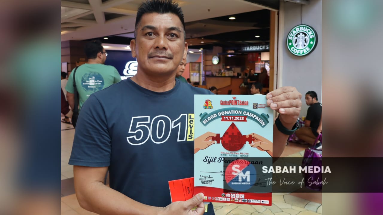 Kota Kinabalu : “Ini tanggungjawab kita sebagai orang sihat untuk sama-sama membantu mereka yang memerlukan bekalan darah,” kata Almudi Eskal,47.
