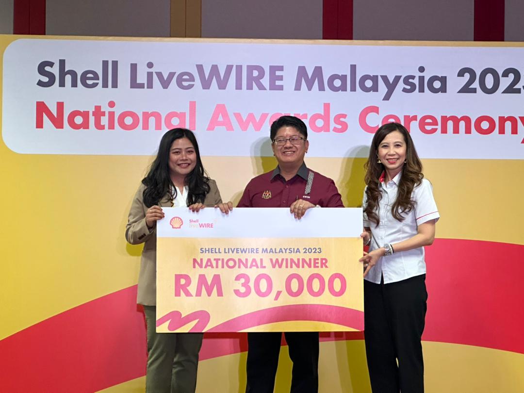 Pada majlis itu lima pemenang kebangsaan Shell LiveWIRE 2023 — GK Aqua, Southeast Asia Treasure, Grace Creation, Materials in Works dan Pungu Borneo.