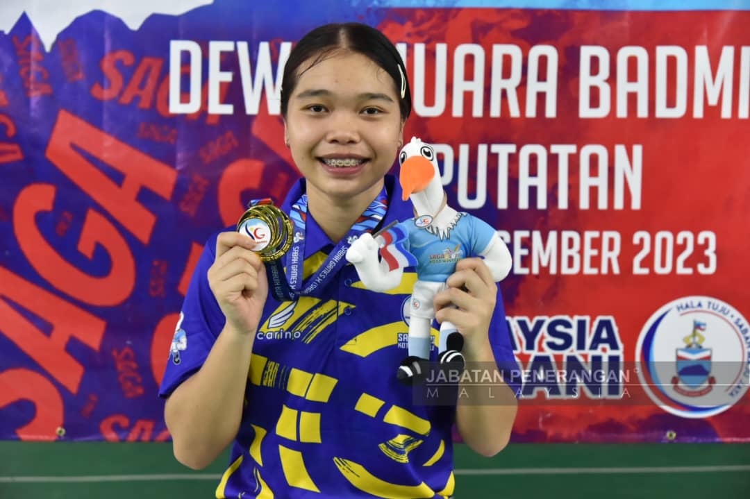 Pingat emas kedua pula disumbang dalam beregu wanita, Arena Satu Samin dan Goh Shuen Tong apabila berhasil menentang pasangan Tuaran, Cassey Rynn Rompog dab Jovine Calvin (perak) dengan 21-12, 21-15.