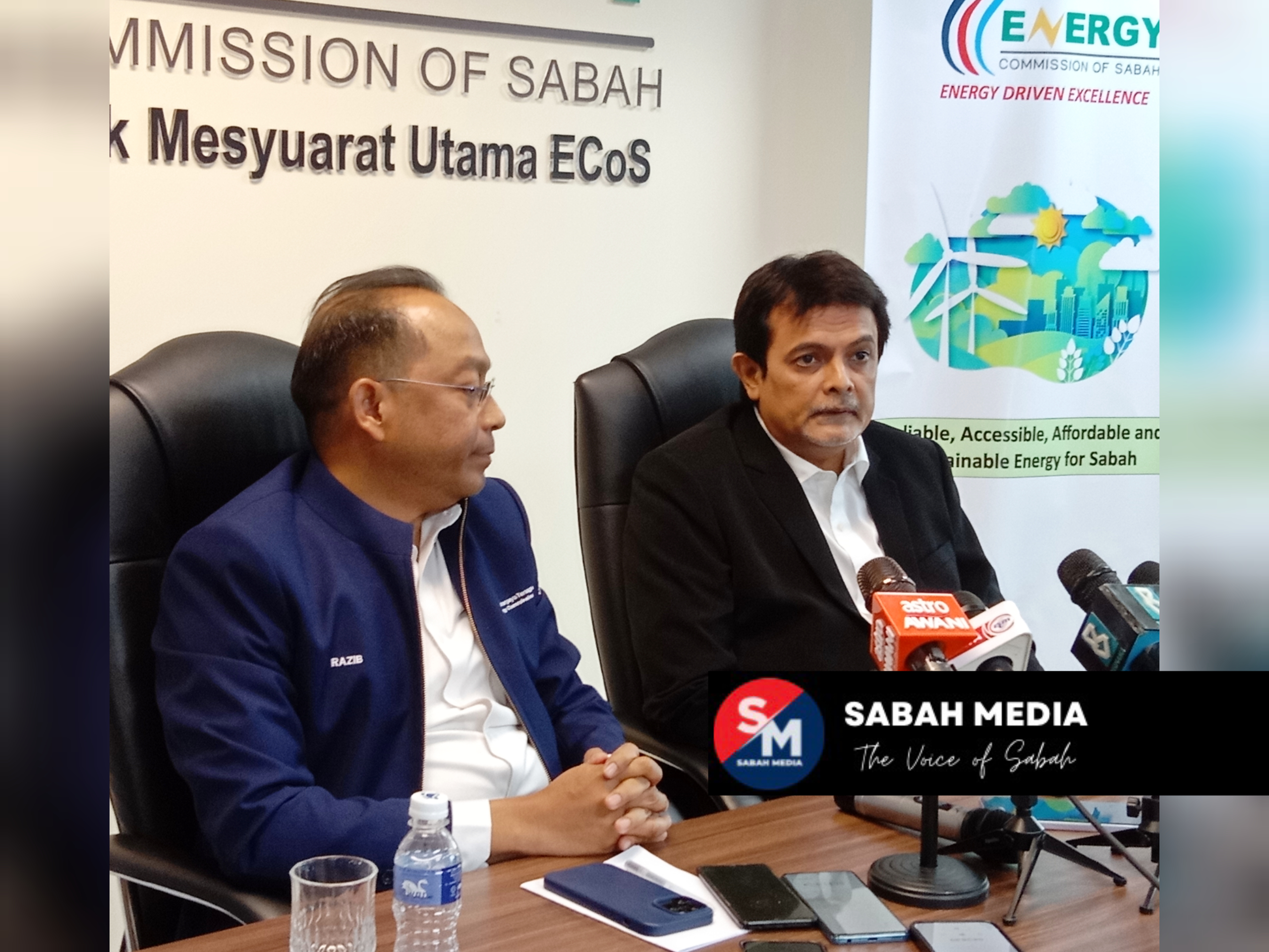 Razib (kiri) bersama Nasser semasa sidang media selepas majlis serah kuasa kawal selia bekalan elektrik Sabah.