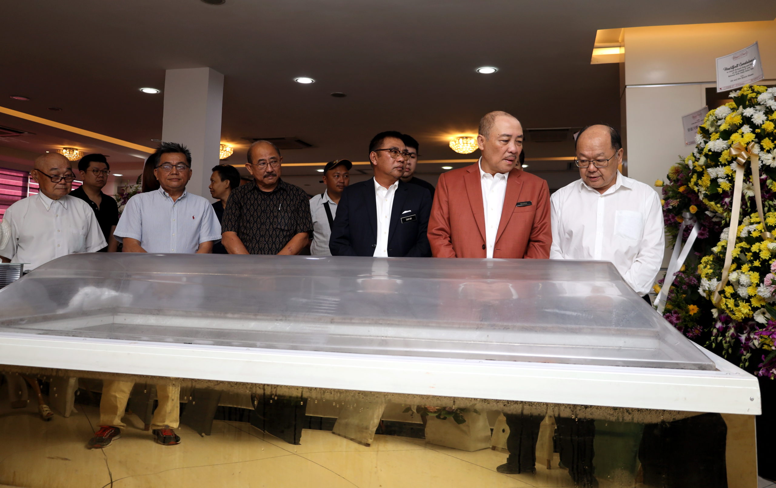 Hajiji diiringi oleh Setiausaha Kerajaan Negeri, Datuk Seri Sr Safar Untong di Fook Lu Siew Funeral Parlour, Jalan Tuaran di sini.