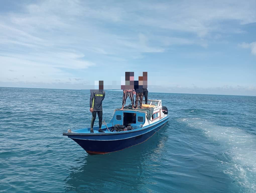 Kota Kinabalu : Empat lelaki yang disyaki menangkap ikan menggunakan panah besi di kedudukan 1.36 batu nautika Barat Daya Pulau Mengalum ditahan bersama sebuah bot nelayan oleh Agensi Penguatkuasaan Maritim Malaysia (Maritim Malaysia) Sabah dan Wilayah Persekutuan Labuan kira-kira jam 11 pagi tadi.