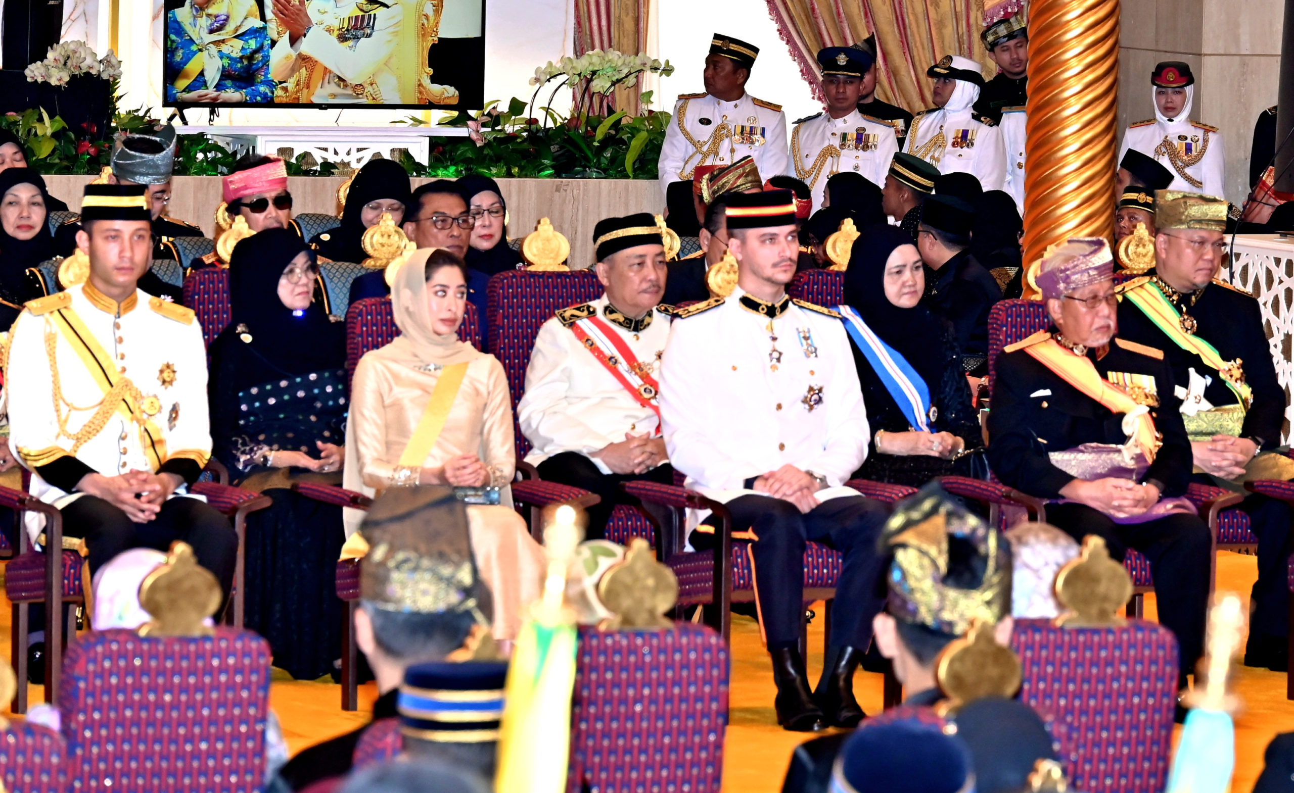 BANDAR SERI BEGAWAN: Ketua Menteri Sabah, Datuk Seri Hajiji Noor dan isteri Datin Seri Juliah Salag menghadiri Majlis Istiadat Persandingan Diraja Pengiran Muda Abdul Mateen Bolkiah dan Pengiran Anak Isteri Pengiran Anisha Rosnah Adam di Balai Singgahsana Indera Buana, Istana Nurul Iman pada Ahad.