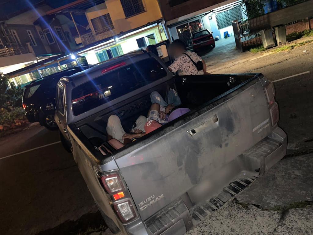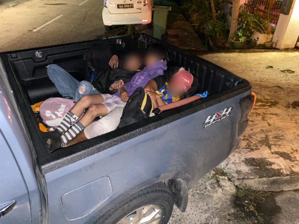 “Pemeriksaan terhadap kenderaan dilakukan dan mendapati sembilan orang berada di dalam kenderaan jenis “Double Cab” yang mana enam orang termasuk seorang kanak-kanak berada di dalam ruang dalam kenderaan manakala tiga orang bersembunyi di ruang “bucket” belakang kenderaan tersebut.