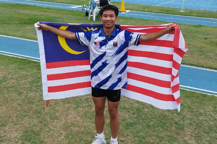 “Semua ini sebab boleh, kita mesti boleh bawa balik pingat dan semua ini tiada yang mustahil. Syukur kita berjaya meraih pingat emas dalam acara 80 meter lari berpagar bawah 14 tahun.