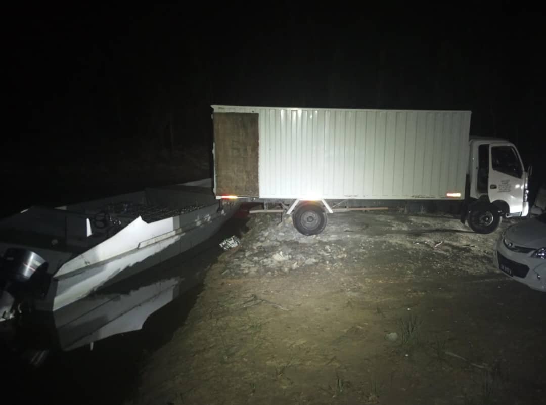 “Ketika serbuan dibuat, kesemua suspek bertindak melarikan diri ke kawasan paya bakau berhampiran dan meninggalkan bot, lori kargo serta muatan yang dipunggah. Usaha menjejaki suspek yang berada di lokasi pemunggahan gagal berikutan keadaan gelap dan kawasan berpaya.