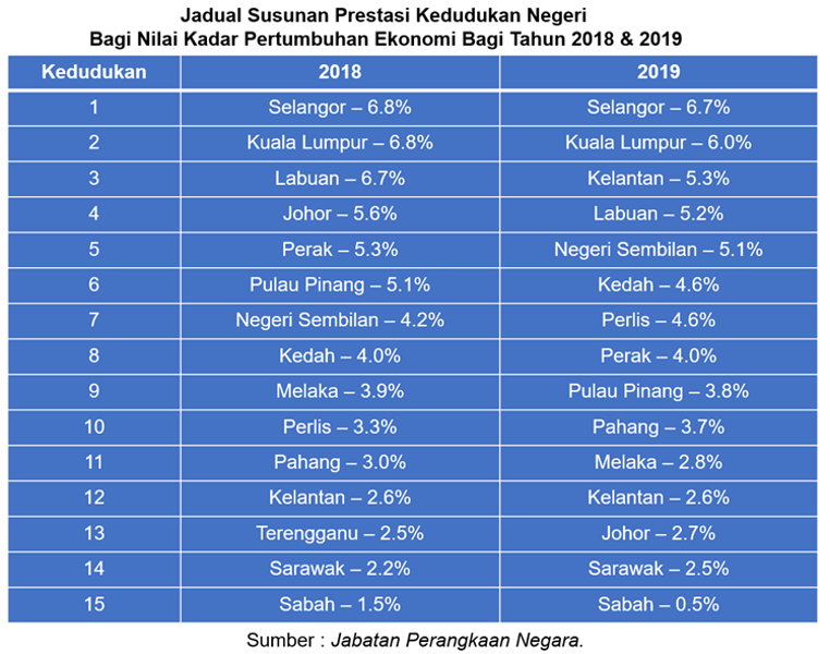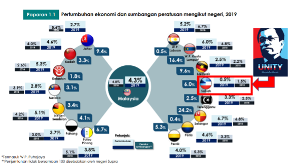 Malah Kelantan yang sudah bertahun-tahun lamanya di bawah kerajaan PAS berada lebih atas dari negeri Sabah pada tahun 2018 dan 2019. Apa alasan yang kerajaan negeri Warisan boleh berikan? Ini kerana, negeri-negeri lain boleh juga mencatat pertumbuhan yang lebih baik dan positif pada dua tahun tersebut, kenapa Sabah tidak boleh pada ketika itu?