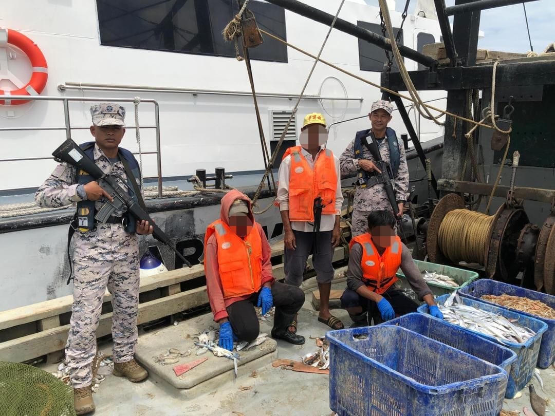 Katanya, hasil pemeriksaan lanjut mendapati tiga lelaki pemegang pasport warga Indonesia berumur di antara 29 hingga 39 tahun berada di atas bot tersebut dan didapati melakukan kesalahan menarik pukat pada jarak 1.5 batu nautika dari daratan.