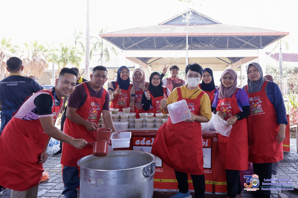 “Antara aktiviti yang dijalankan hari ini adalah penyediaan bahan masakan, memasak, membungkus serta pengagihan bubur lambuk kepada semua warga UMS dan orang awam.