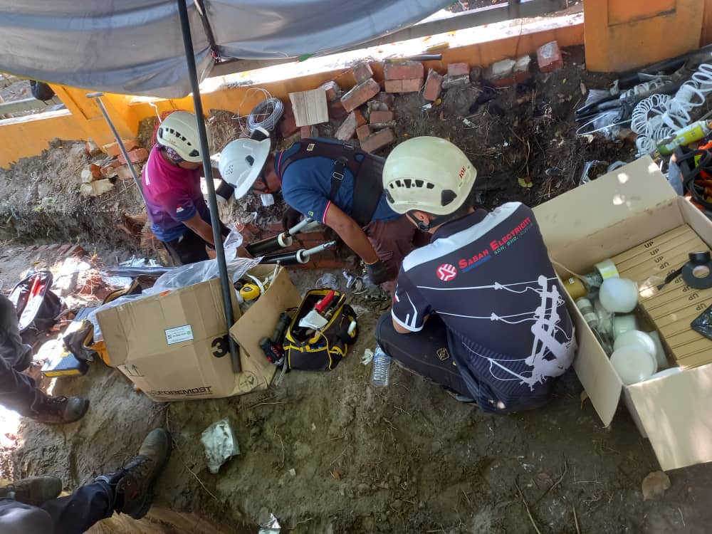 Pada jam 7.02 malam, lokasi kerosakan kabel bawah tanah berjaya dikenal pasti dan kerja-
