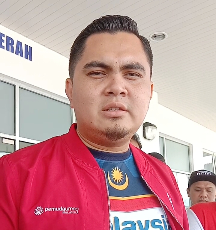 KOTA KINABALU: Ketua Pergerakan Pemuda UMNO Dr Muhamad Akmal Saleh selesai memberikan kenyataan di Ibu Pejabat Polis Daerah (IPD) Kota Kinabalu, hari ini.