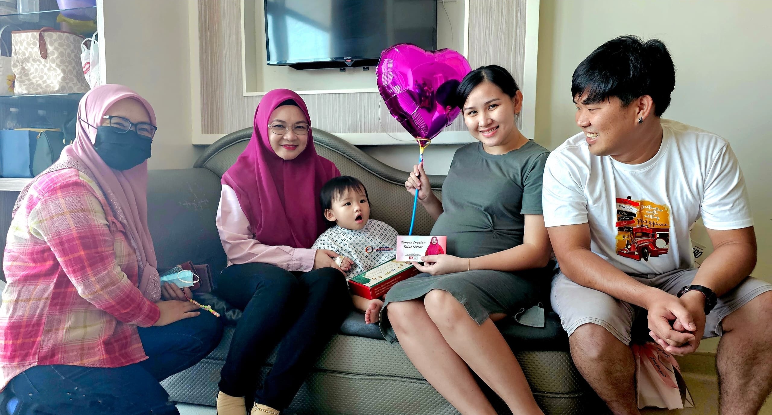 Redonah ditemani Aziah (kiri) melawat Cathress berusia 1 tahun 3 bulan di KPJ Specialist Hospital, peminat tegar Ketua Menteri Datuk Seri Hajiji Noor.