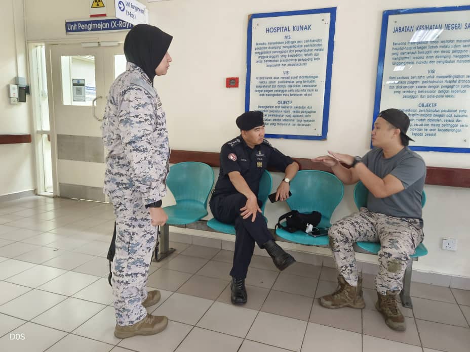 Dalam pada itu, kedua-dua anggota Maritim Malaysia yang cedera telah dibawa ke Hospital Kunak bagi diberikan rawatan segera.  – SABAH MEDIA / FOTO MARITIM MALAYSIA