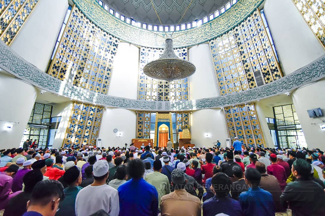Solat diimamkan Imam Besar, Suhaidi Kuanting manakala Bungsu menyampaikan khutbah bertajuk Azam Lakukan Perubahan Capai Kemajuan.