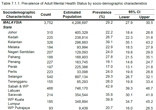 11. Manakala, Tinjauan Kesihatan & Morbiditi Kebangsaan/ National Health & Morbidity Survey (NHMS) 2015 pula mendapati Sabah merekodkan isu kesihatan mental tertinggi (42.9%), jauh lebih tinggi berbanding dengan peratusan negara (29.2%).