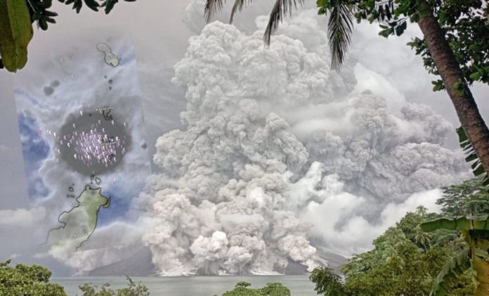 Ketinggian letusan yang dicerap adalah mencapai 63,000 kaki (20km). – SABAH MEDIA