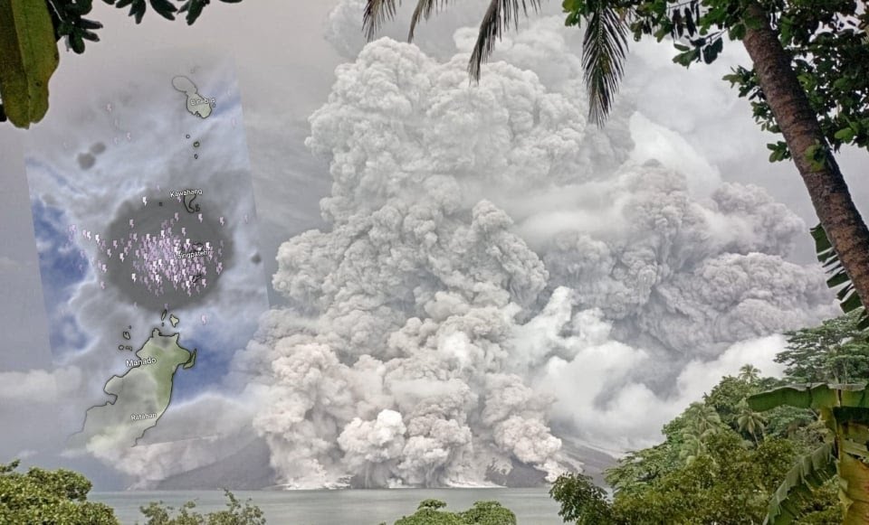 Terdahulu, Gunung Ruang, di Sulawesi Utara berketinggian 725 meter dari paras laut telah meletus semula pada awal pagi hari ini.