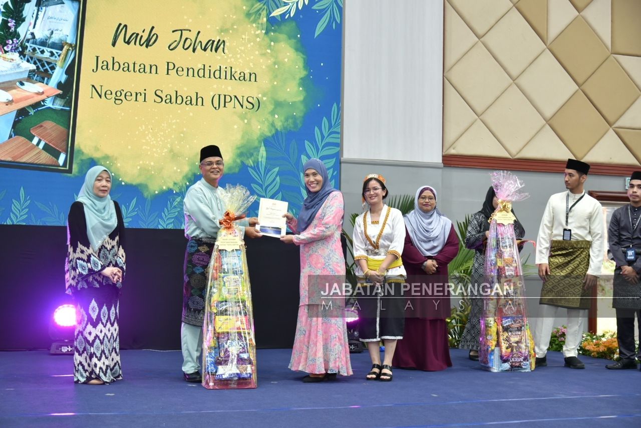 Hadiah berupa hamper disampaikan oleh Setiausaha Persekutuan (SUP) Sabah, Datuk Makhzan Mahyuddin di Dewan Serbaguna Kompleks Pentadbiran Kerajaan Persekutuan Sabah, di sini semalam.