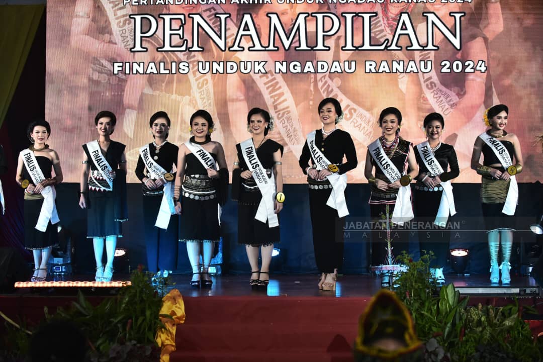 Sebelum berakhir, majlis menyaksikan lambaian akhir Unduk Ngadau Daerah Ranau 2023, Tati Fiumie Chang Yee Ann sebelum dipersembahkan dengan penampilan 12 finalis Unduk Ngadau Kaamatan Daerah Ranau 2024.