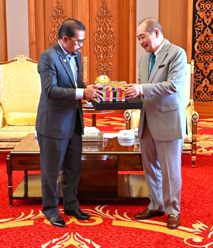 Kota Kinabalu: Ketua Menteri, Datuk Seri Hajiji Noor hari ini menerima kunjungan hormat daripada Presiden Kongres Kesatuan Pekerja-pekerja Di Dalam Perkhidmatan Awam (CUEPACS), Dato Dr Adnan Mat di pejabatnya di Menara Kinabalu di sini.