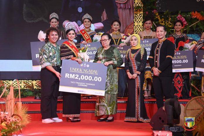 Kota Kinabalu: Nurul Yanadido dinobatkan juara Tati Tinandai Togingo pada Linundus Unduk Ngadau Bandaraya Kota Kinabalu di sini petang tadi.