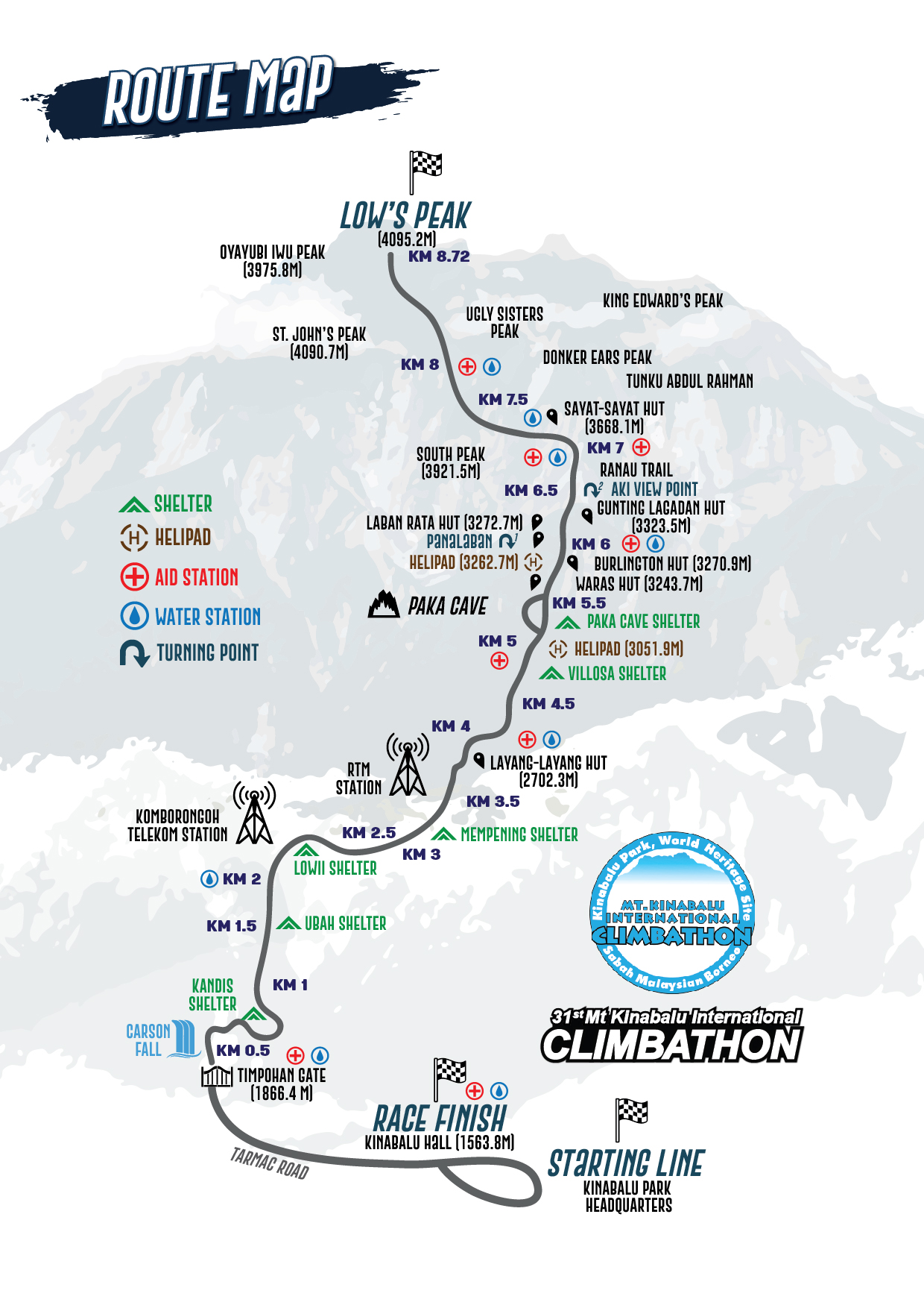 “Laluan mencabar sepanjang 26 kilometer ini akan ada kenaikan ketinggi 13.3 kilometer dan peserta akan menghadapi ujian ketahanan dan ketekunan yang paling hebat apabila mereka berlumba naik dan turun Gunung Kinabalu semula.