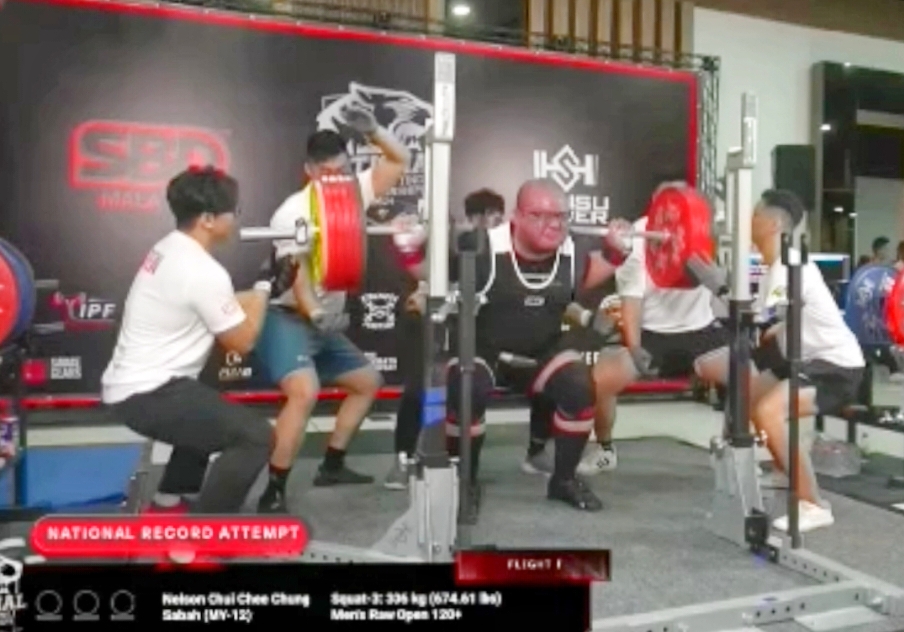 KOTA KINABALU: Atlet Powerlifting negara dari Sabah, Nelson chui meraih pingat emas sekali gus memecah rekod kebangsaan dalam acara disiplin ‘squat’ bagi kategori Men Open, 120+kilogram (kg), SBD X Hansu National Powerlifting Championship 2024 yang berlangsung di Da Men Hall, Subang Jaya pada 24 hingga 26 Mei 2024.
