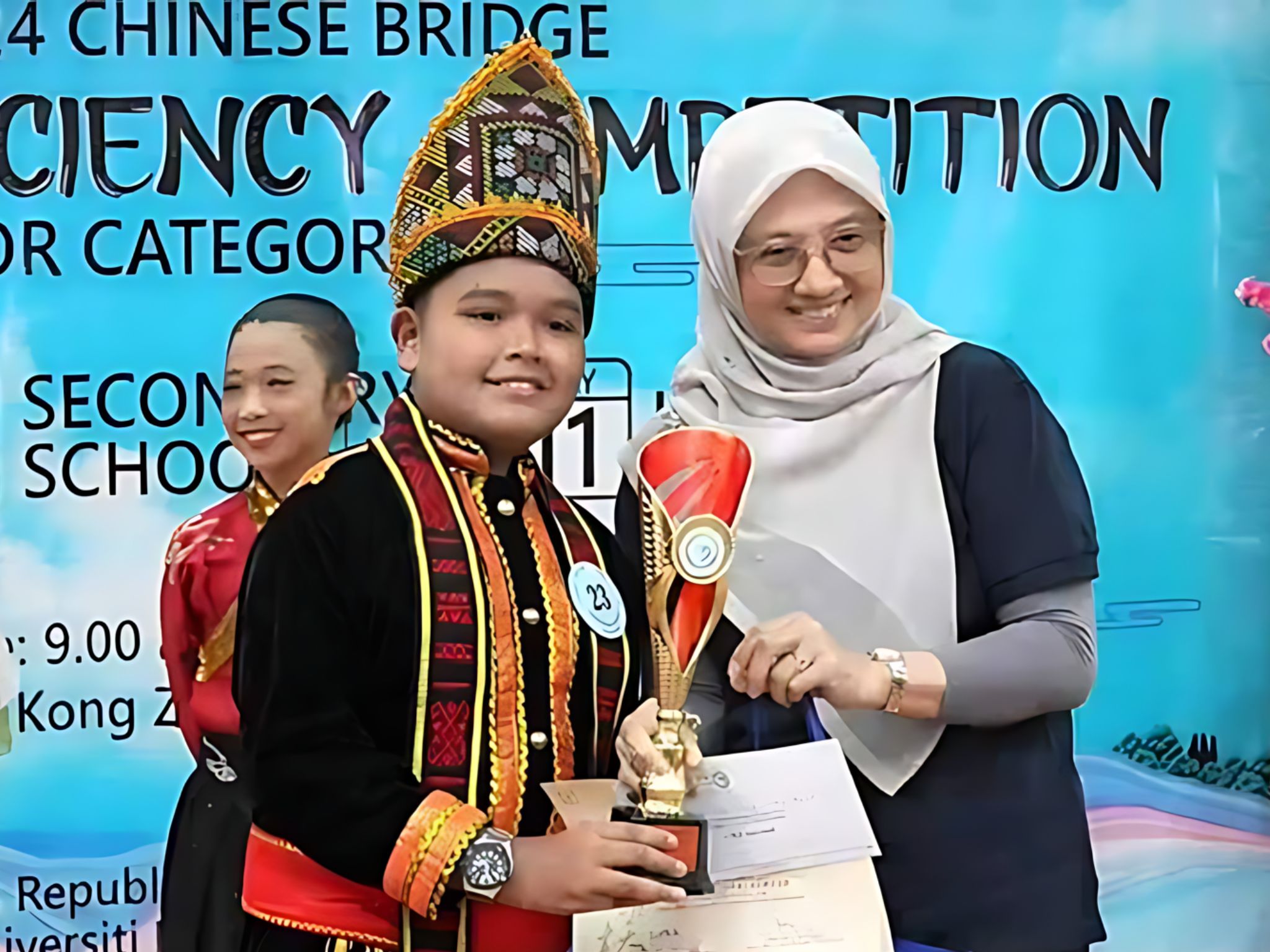 Kota Kinabalu: ‘Anak Didik’ Confucius Institute (CI) Universiti Malaysia Sabah (UMS) cemerlang dalam Kejohanan Akhir Jambatan Cina keempat untuk Pelajar Sekolah Rendah Malaysia apabila berjaya menyapu bersih ketiga-tiga hadiah utama bagi kategori pelajar sekolah rendah.