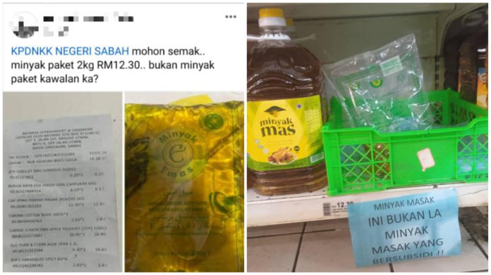 Bagaimanapun katanya, pasar raya berkenaan telah meletakkan notis bahawa minyak paket dua kilogram itu adalah bukan minyak masak bersubsidi.
