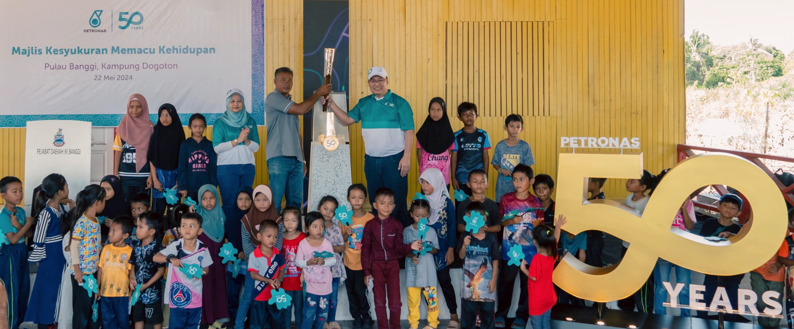 KUDAT: Sempena ulang tahunnya yang ke-50, kakitangan dan sukarelawan PETRONAS kembali ke Pulau Banggi di sini baru-baru ini dalam satu majlis kesyukuran bersama penduduk di tiga buah kampung yang kini menikmati bekalan elektrik hasil sumbangan sistem tenaga solar tahun lepas.