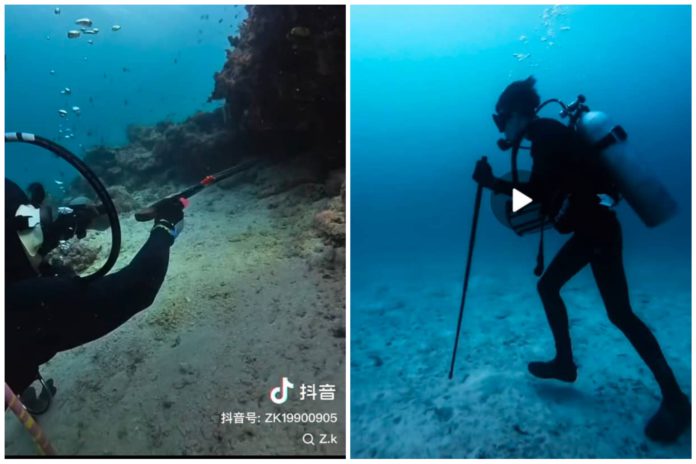 Menerusi video yang tular itu melibatkan perbuatan menembak ikan menggunakan senapang panah yang dipercayai membabitkan sebuah pusat menyelam di Semporna.