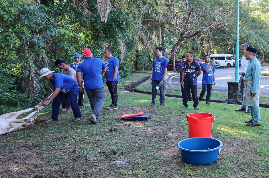 “Manakala sejumlah 35 orang kakitangan UMS dan 30 orang pelajar turut terlibat membantu dan menjayakan kerja-kerja penyembelihan, melapah dan pengagihan daging korban.