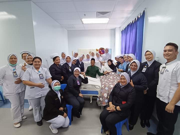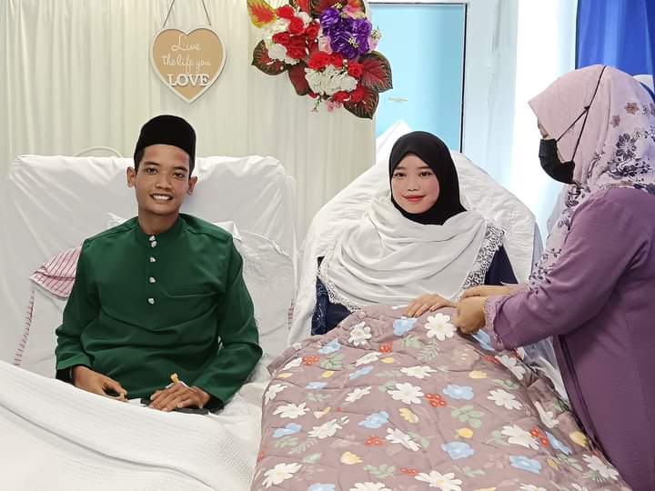 SANDAKAN: Dua pesakit Alif Ikram dan Siti Nadhirah selamat diijabkabulkan sebagai pasangan suami isteri di Hospital Duchess of Kent (HDOK) di sini pada Jumaat (28 Jun).