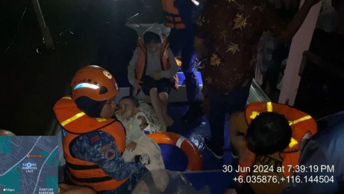 “APM Daerah Kota Kinabalu dengan kekuatan dua orang pegawai, sembilan orang LLP telah berjaya mengeluarkan dua orang dewasa dan bayi berusia lapan bulan yang terperangkap dalam bencana banjir di rumah mereka pada jam 7.45 malam tadi.