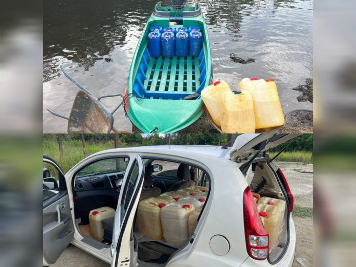 “Turut disita kenderaan Perodua MyVi (1 unit), bot laju tiada no. Pendaftaran ( 2 unit), enjin sangkut Yamaha 40HP (2 unit), kereta sorong (4 unit), gelen kosong (114 unit), gelen berisi petrol bercampur 2T (2 unit) dan anak kunci kenderaan MyVi (1 unit).