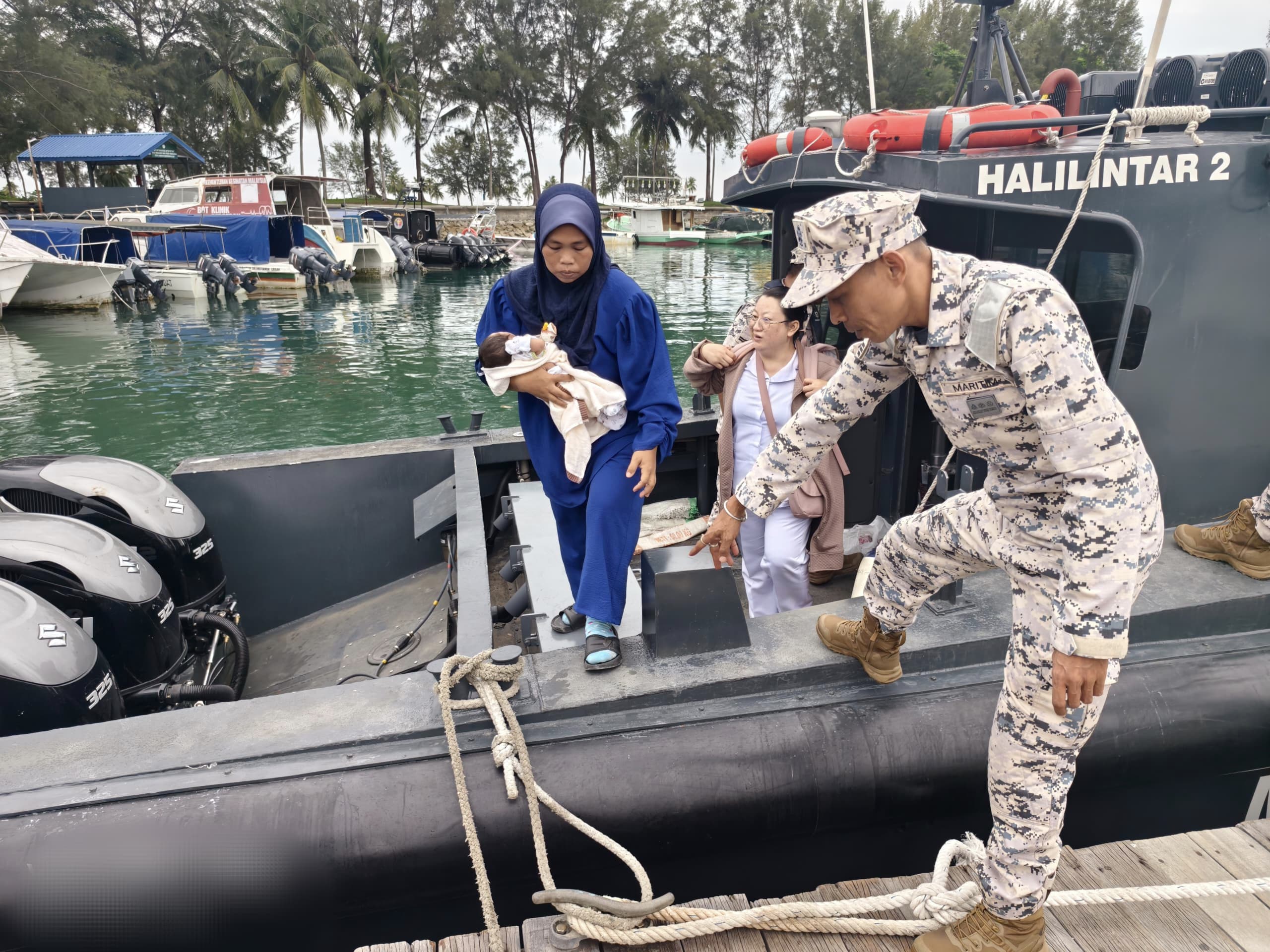 Kudat : Agensi Penguatkuasaan Maritim Malaysia (Maritim Malaysia) melakukan misi bantuan Medical Evacuation (Medevac) bagi membawa seorang bayi lelaki berusia tiga hari yang memerlukan rawatan segera di Klinik Kesihatan Karakit, Pulau Banggi di sini semalam.