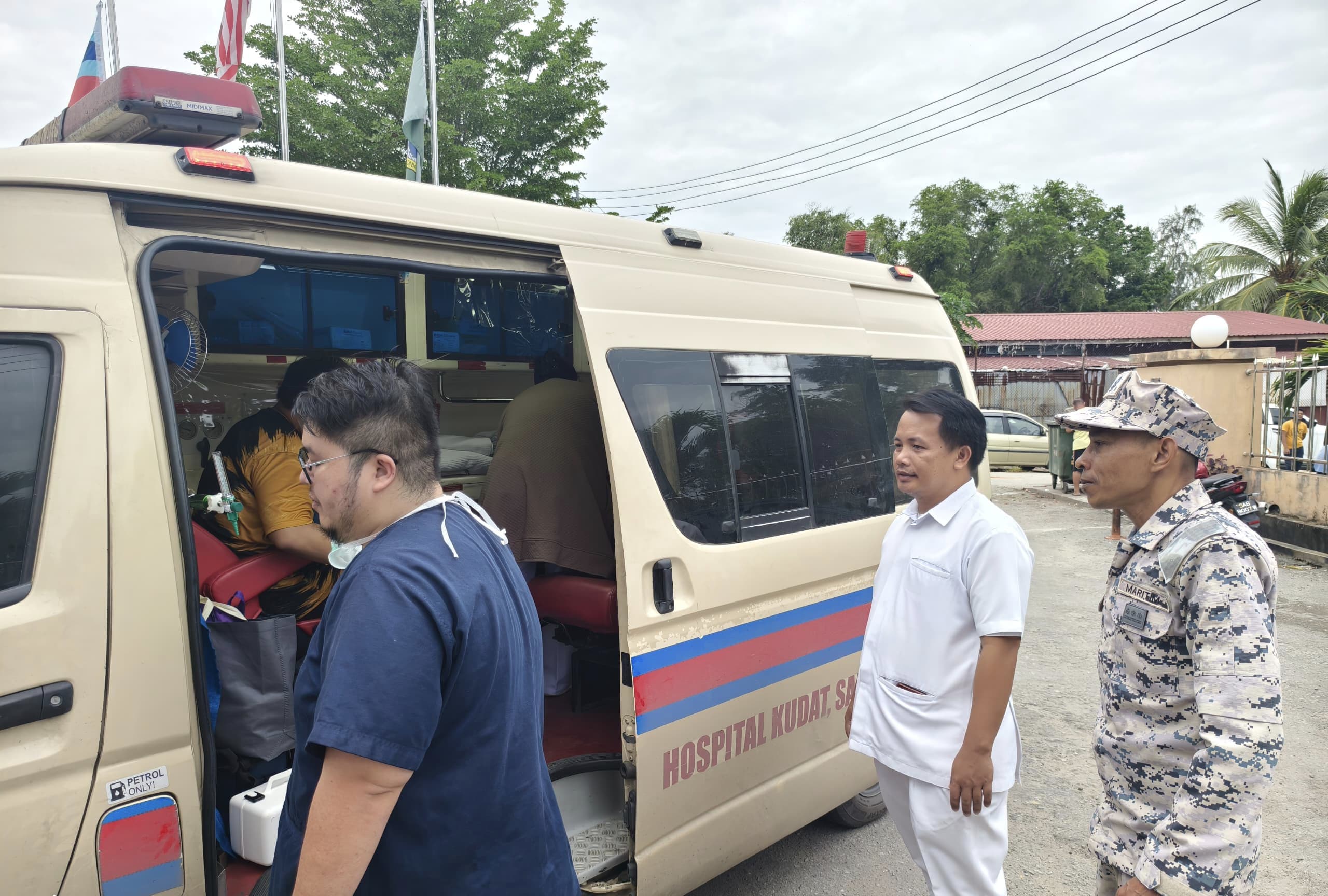 “Mangsa diiringi ibunya dan tiga orang kakitangan kesihatan tiba di Jeti Marina, Kudat lebih kurang jam 5 petang, seterusnya dipindahkan ke ambulans untuk mendapatkan rawatan kecemasan di Hospital Kudat.