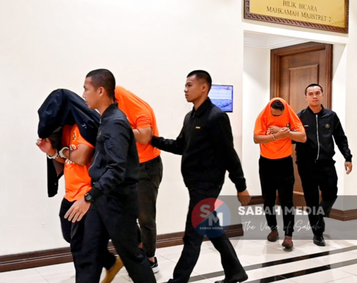 Ketiga-tiga suspek lelaki, dua daripadanya diwakili peguam manakala seorang tertuduh tidak diwakili peguam.