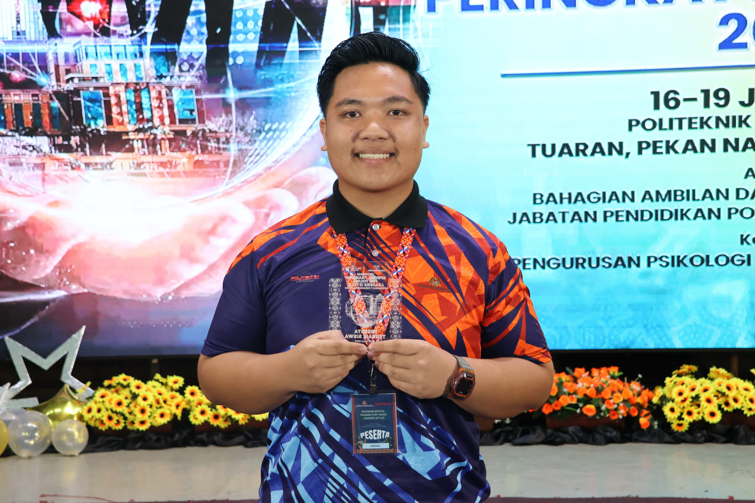 Pelajar Diploma Kejuruteraan Elektrik dan Elektronik PKK, Joshua Semueil, 19, berbangga dan berterima kasih kepada rakan sekumpulan atas kerjasama yang diberikan sepanjang program berlangsung sehingga dinobatkan Anugerah Peserta Siswa Terbaik.