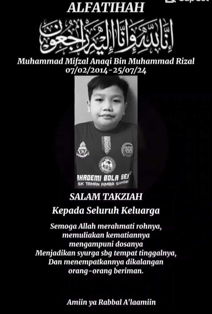 “Namun pada 25 Julai 2024, jam 7.00 pagi guru kelas telah dimaklumkan oleh waris murid bahawa anak mereka telah meninggal dunia.