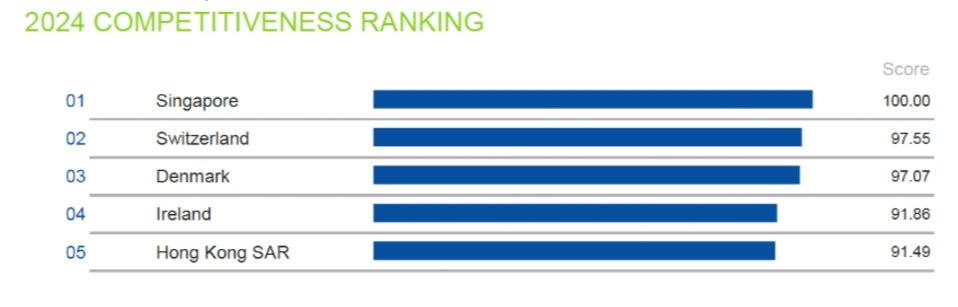 9. Sebagai contoh. Negara-negara yang berada di kedudukan teratas daya saing telah merekodkan nilai produktiviti pekerja yang tinggi: Singapura (1), Switzerland (2), Denmark (3), Ireland (4).