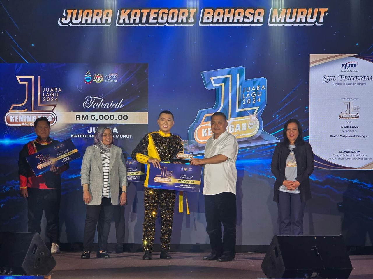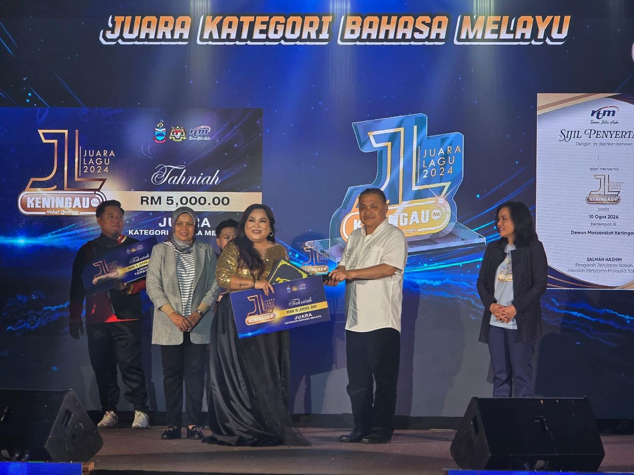 Keningau : Penyanyi, Erdeeyona Christoper berjaya merangkul kemenangan berganda pada pertandingan Juara Lagu Keningau FM 2024 yang berlangsung di Dewan Masyarakat Keningau di sini semalam.