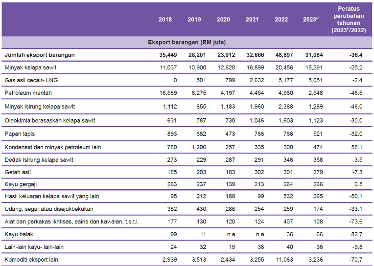 25. Nilai ini selari dengan jumlah eksport minyak sawit mentah oleh Sabah, seperti yang di laporkan di dalam Statistik Perdagangan Malaysia Mengikut Negeri Tahun 2023 oleh Jabatan Perangkaan Malaysia (DOSM).