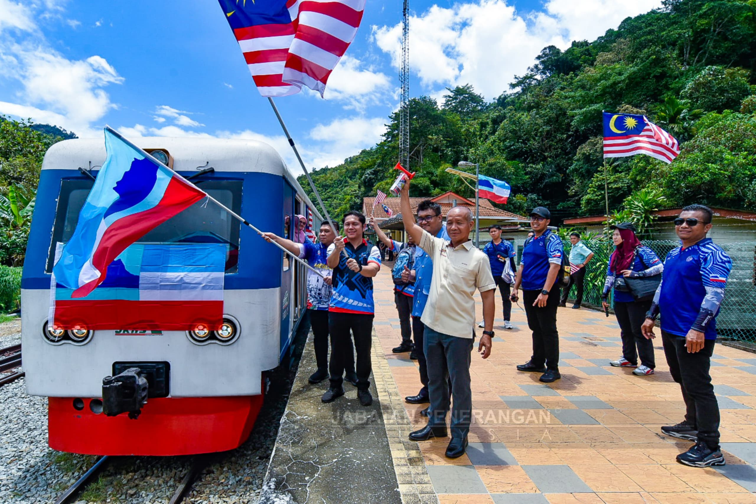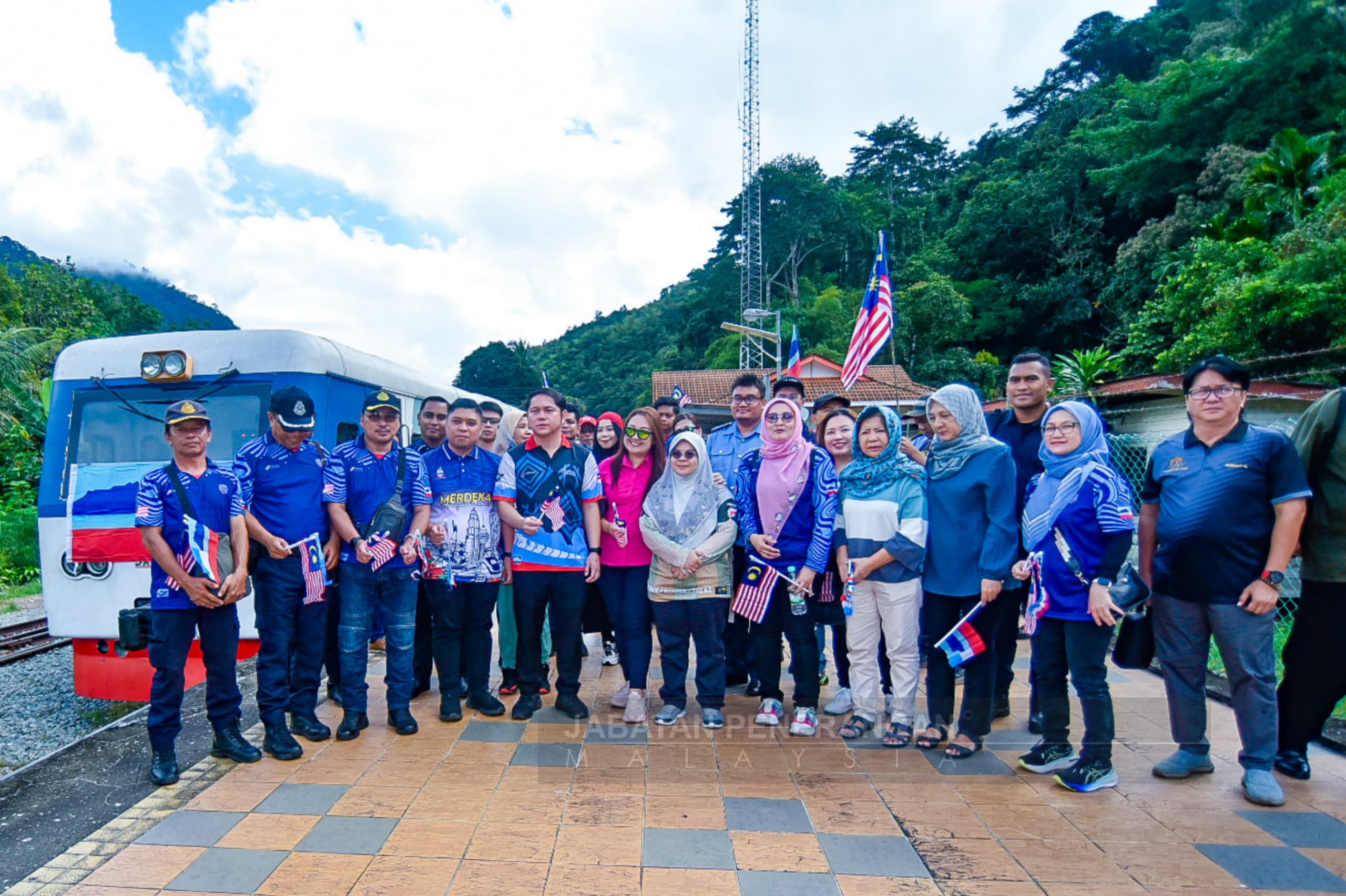 Tenom: Konvoi Kembara Merdeka Jalur Gemilang (KMJG) Sabah mencipta sejarah buat kali pertama apabila peserta rombongan menaiki Injin Puput dari Pekan Tenom ke Pangi.