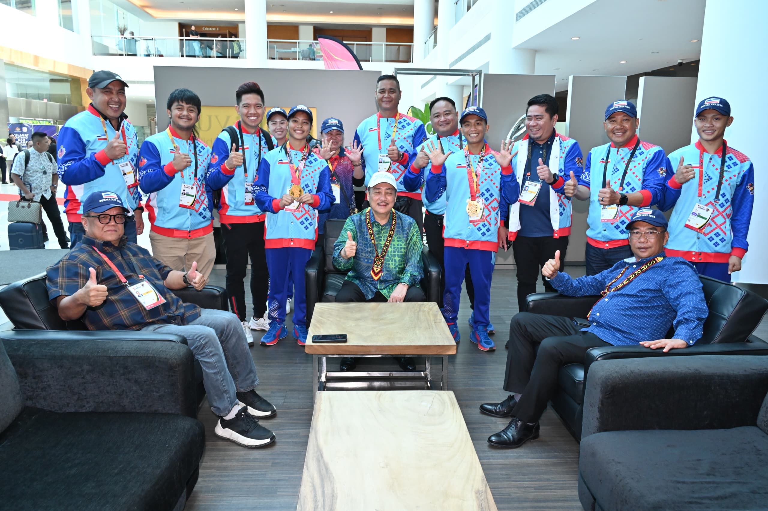 Hajiji turut mengucapkan tahniah kepada skuad Wushu yang berjaya menyumbang pingat emas dan perak pertama untuk Sabah.
