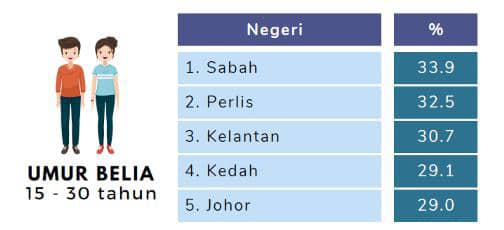 21. Malah, jumlah belia (15 – 30 tahun) di Sabah merangkumi hampir 40% daripada jumlah keseluruhan penduduk Sabah, iaitu tertinggi di Malaysia.