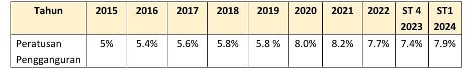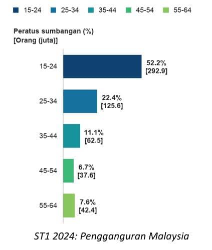 24. Data sediada menunjukkan kebiasaan-nya golongan belia merupakan kumpulan penggangur terbesar. Sebagai contoh. Menurut Laporan Tenaga Buruh Malaysia Suku Tahun Pertama 2024 oleh DOSM, daripada jumlah pengganguran negara, lebih 50% adalah golongan belia (15 – 24 tahun).